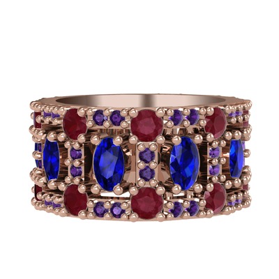 Lab safir, kök yakut ve ametist 14 ayar rose altın yüzük
