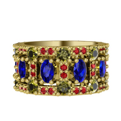 Lab safir, peridot ve garnet 8 ayar altın yüzük