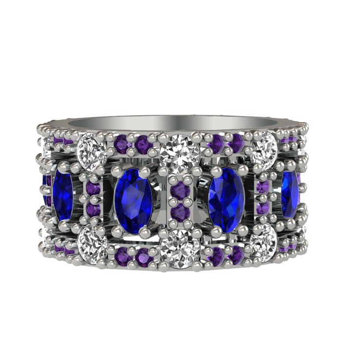 Lab safir, pırlanta ve ametist 8 ayar beyaz altın yüzük (1.76 karat)