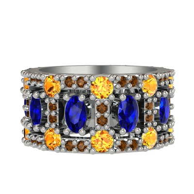 Lab safir, sitrin ve dumanlı kuvars 925 ayar gümüş yüzük