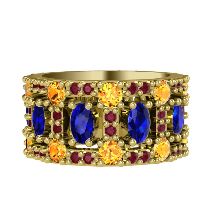 Lab safir, sitrin ve kök yakut 925 ayar altın kaplama gümüş yüzük