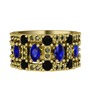 Lab safir, siyah zirkon ve peridot 14 ayar altın yüzük