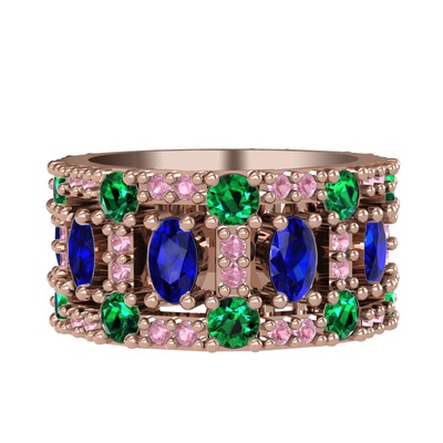 Lab safir, yeşil kuvars ve pembe kuvars 14 ayar rose altın yüzük