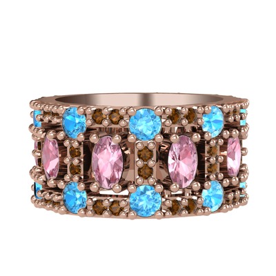 Pembe kuvars, akuamarin ve dumanlı kuvars 14 ayar rose altın yüzük