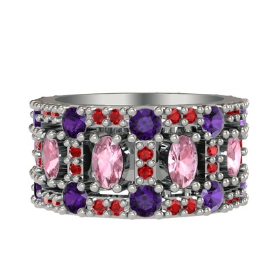 Pembe kuvars, ametist ve garnet 8 ayar beyaz altın yüzük