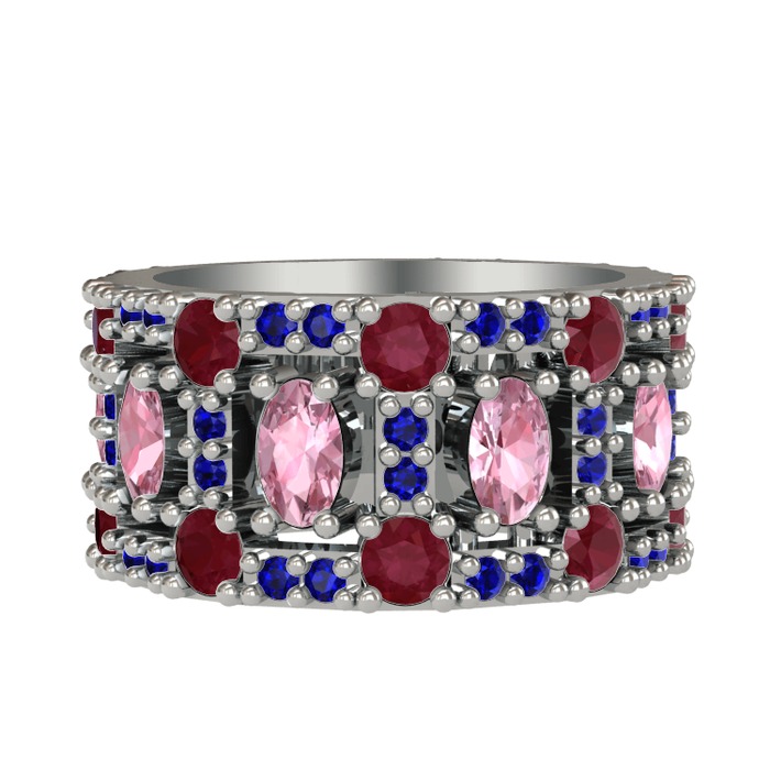 Pembe kuvars, kök yakut ve lab safir 925 ayar gümüş yüzük