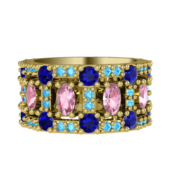 Pembe kuvars, lab safir ve akuamarin 925 ayar altın kaplama gümüş yüzük