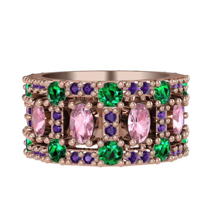 Pembe kuvars, yeşil kuvars ve ametist 8 ayar rose altın yüzük