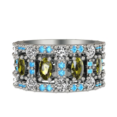 Peridot, beyaz zirkon ve akuamarin 925 ayar gümüş yüzük