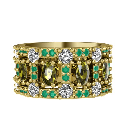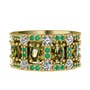 Peridot, beyaz zirkon ve kök zümrüt 8 ayar altın yüzük