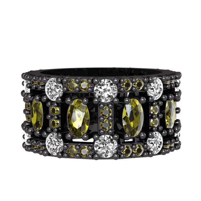 Peridot ve beyaz zirkon 925 ayar siyah rodyum kaplama gümüş yüzük