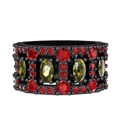 Peridot ve garnet 925 ayar siyah rodyum kaplama gümüş yüzük