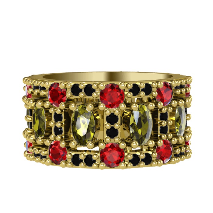 Peridot, garnet ve siyah zirkon 8 ayar altın yüzük