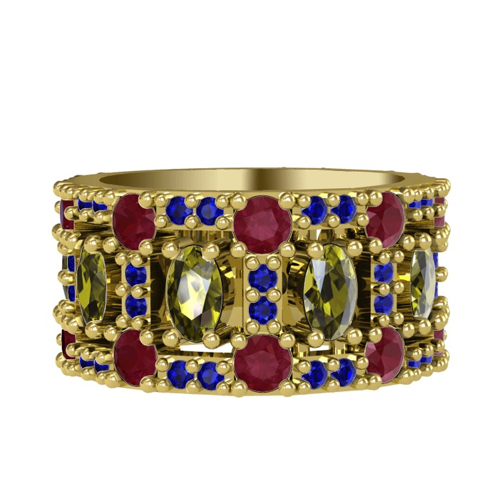 Peridot, kök yakut ve lab safir 925 ayar altın kaplama gümüş yüzük