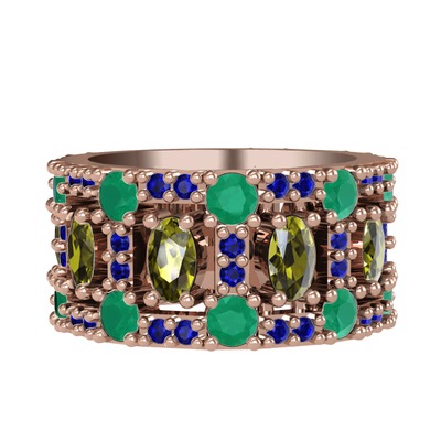 Peridot, kök zümrüt ve lab safir 14 ayar rose altın yüzük