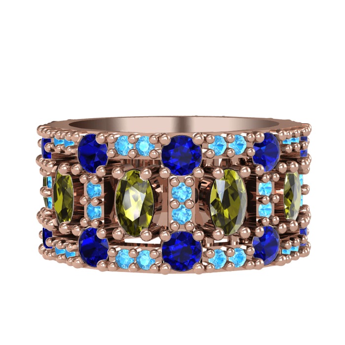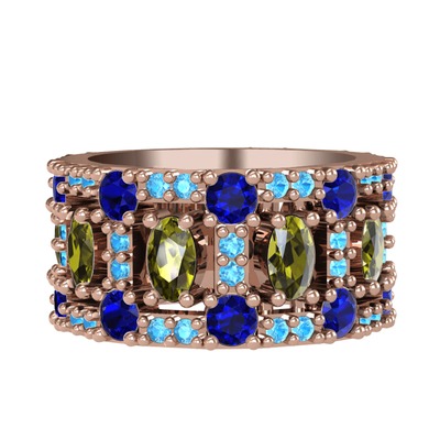 Peridot, lab safir ve akuamarin 18 ayar rose altın yüzük