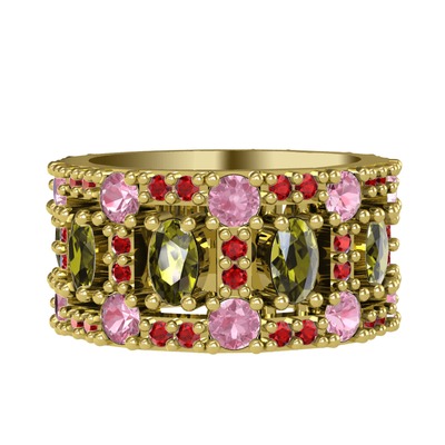 Peridot, pembe kuvars ve garnet 14 ayar altın yüzük