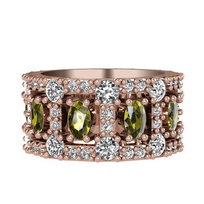 Peridot, pırlanta ve beyaz zirkon 18 ayar rose altın yüzük (1.76 karat)