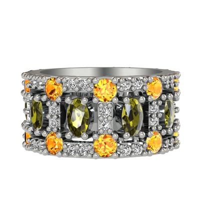 Peridot, sitrin ve beyaz zirkon 18 ayar beyaz altın yüzük