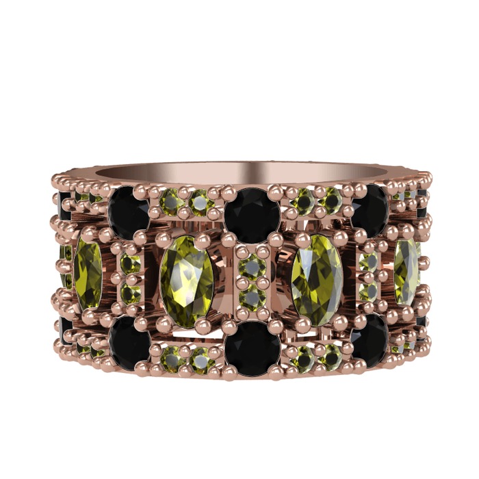 Peridot ve siyah zirkon 18 ayar rose altın yüzük