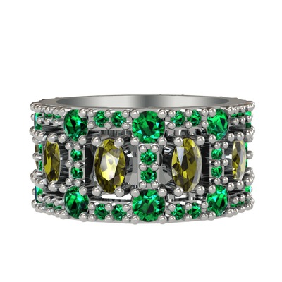 Peridot ve yeşil kuvars 18 ayar beyaz altın yüzük