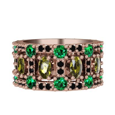 Peridot, yeşil kuvars ve siyah zirkon 8 ayar rose altın yüzük