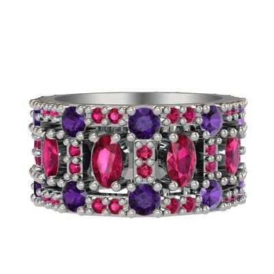 Rodolit garnet ve ametist 925 ayar gümüş yüzük