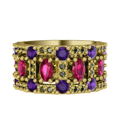 Rodolit garnet, ametist ve peridot 8 ayar altın yüzük