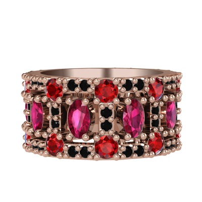 Rodolit garnet, garnet ve siyah zirkon 925 ayar rose altın kaplama gümüş yüzük