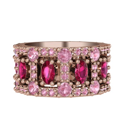 Rodolit garnet ve pembe kuvars 18 ayar rose altın yüzük