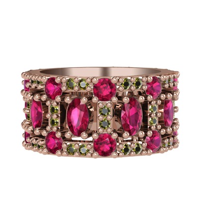 Rodolit garnet ve peridot 14 ayar rose altın yüzük