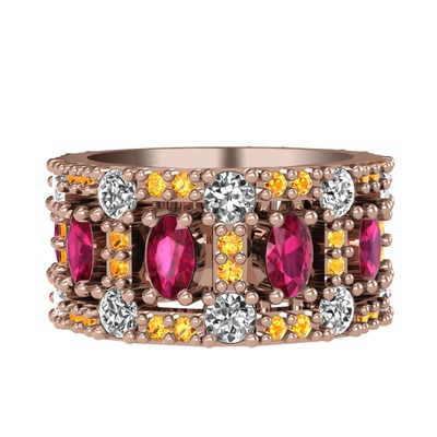 Rodolit garnet, pırlanta ve sitrin 8 ayar rose altın yüzük (1.76 karat)