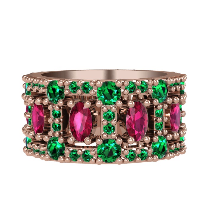 Rodolit garnet ve yeşil kuvars 18 ayar rose altın yüzük