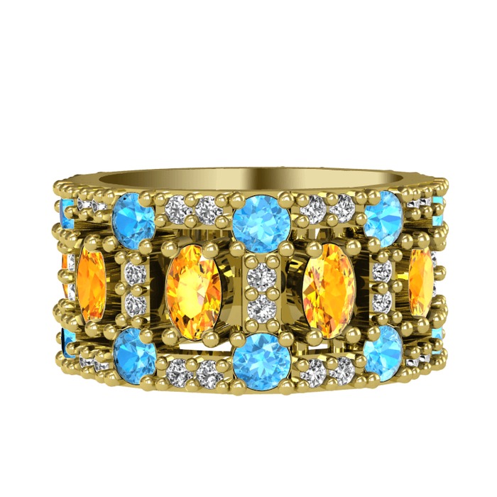 Sitrin, akuamarin ve beyaz zirkon 8 ayar altın yüzük