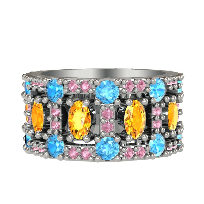 Sitrin, akuamarin ve pembe kuvars 8 ayar beyaz altın yüzük