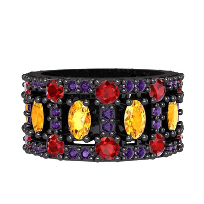 Sitrin, garnet ve ametist 925 ayar siyah rodyum kaplama gümüş yüzük