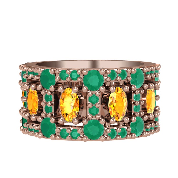 Sitrin ve kök zümrüt 925 ayar rose altın kaplama gümüş yüzük