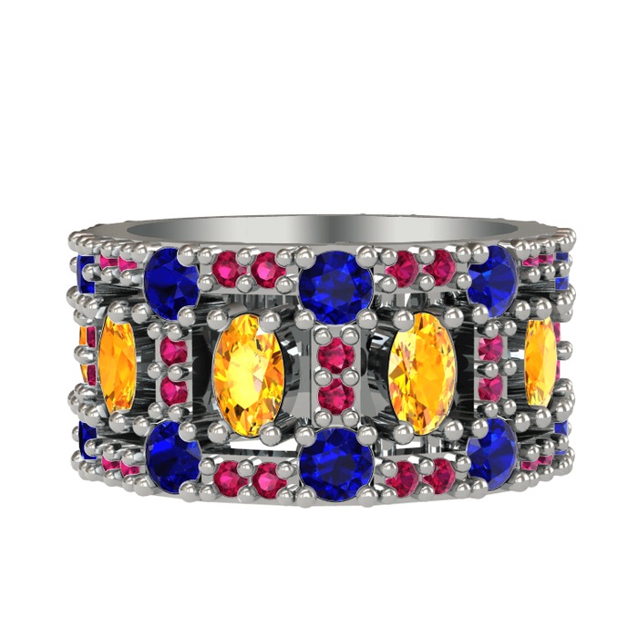 Sitrin, lab safir ve rodolit garnet 14 ayar beyaz altın yüzük