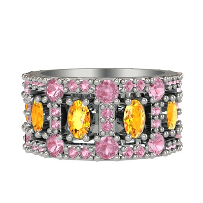 Sitrin ve pembe kuvars 925 ayar gümüş yüzük