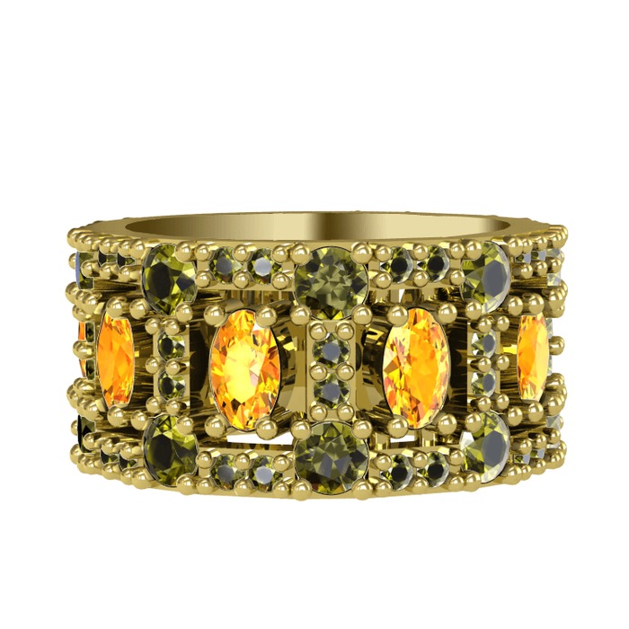 Sitrin ve peridot 925 ayar altın kaplama gümüş yüzük
