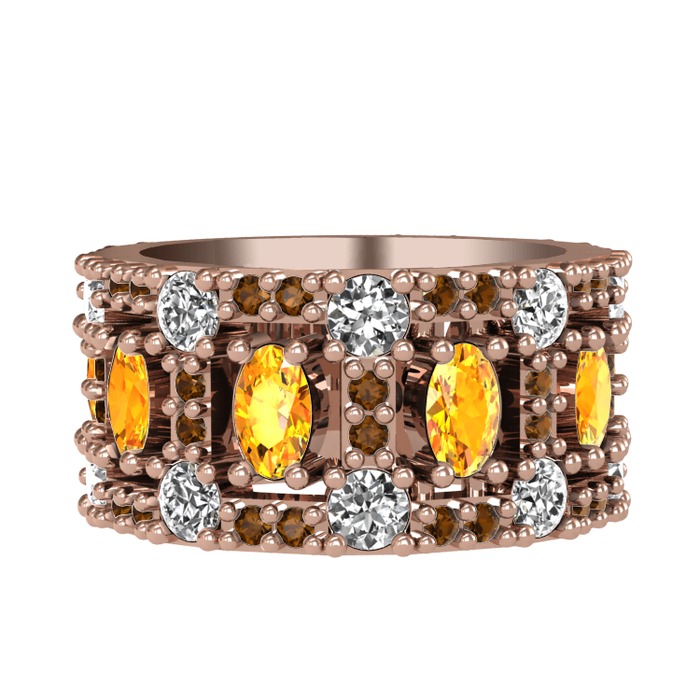 Sitrin, pırlanta ve dumanlı kuvars 8 ayar rose altın yüzük (1.76 karat)