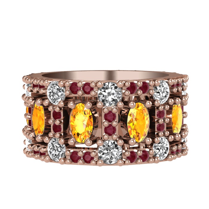 Sitrin, pırlanta ve kök yakut 14 ayar rose altın yüzük (1.76 karat)
