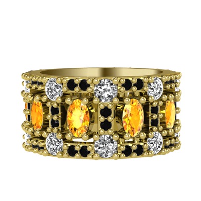 Sitrin, pırlanta ve siyah zirkon 14 ayar altın yüzük (1.76 karat)
