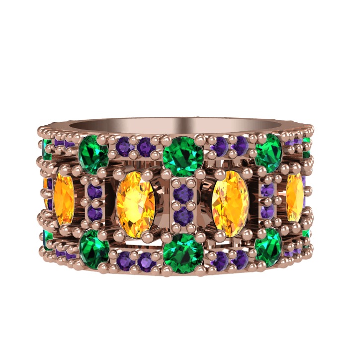 Sitrin, yeşil kuvars ve ametist 8 ayar rose altın yüzük
