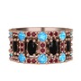 Siyah zirkon, akuamarin ve kök yakut 925 ayar rose altın kaplama gümüş yüzük