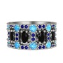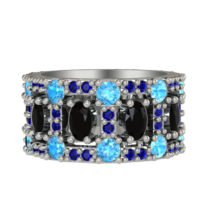 Siyah zirkon, akuamarin ve lab safir 18 ayar beyaz altın yüzük
