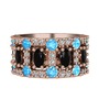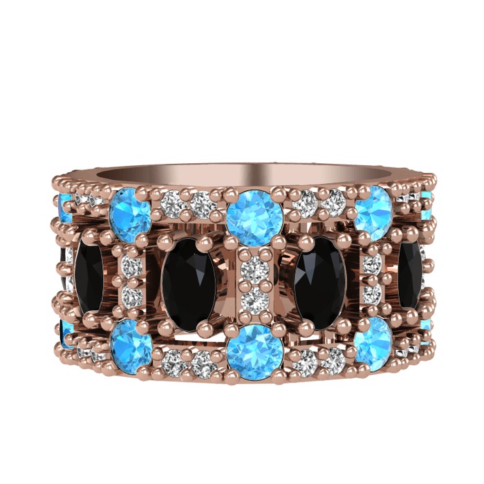 Siyah zirkon, akuamarin ve pırlanta 925 ayar rose altın kaplama gümüş yüzük (0.66 karat)