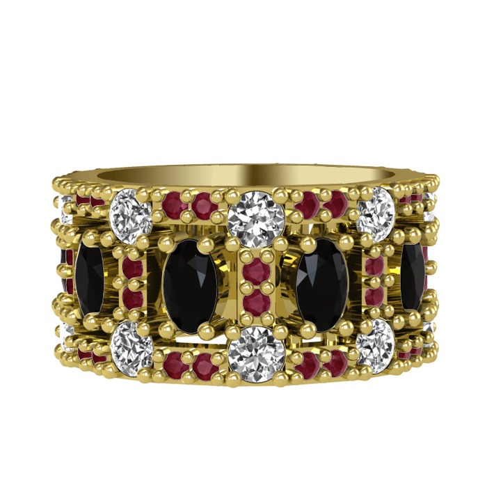 Siyah zirkon, beyaz zirkon ve kök yakut 18 ayar altın yüzük