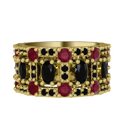 Siyah zirkon ve kök yakut 925 ayar altın kaplama gümüş yüzük