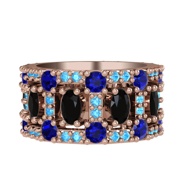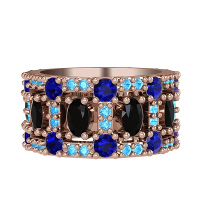 Siyah zirkon, lab safir ve akuamarin 14 ayar rose altın yüzük